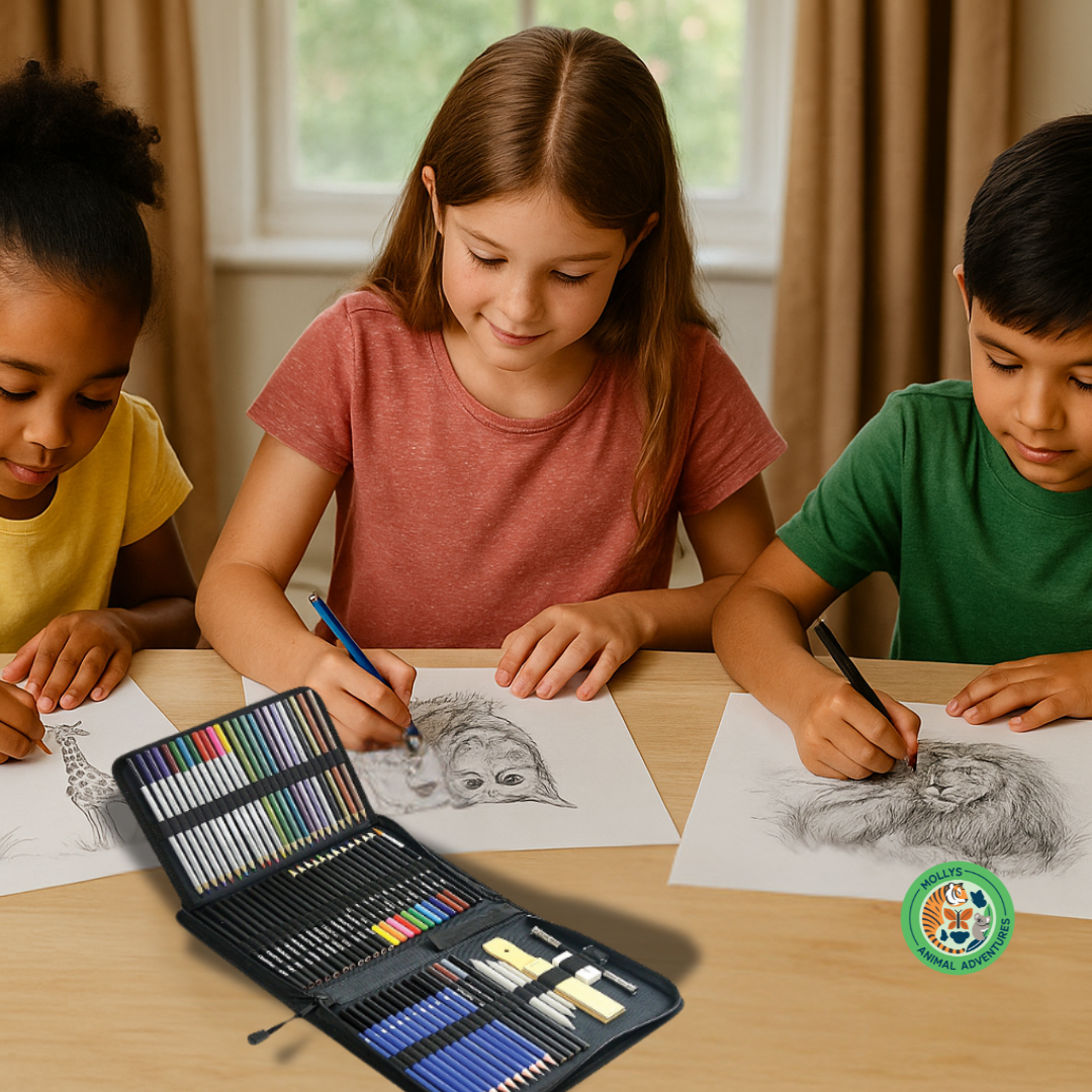 From jungle lions to magical moonlit owls—this 66-piece artist pencil set equips young dreamers and grown-up pros alike with every tool needed to bring art to life.